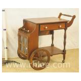 Pine single drop leaf tea cart with cabinet end; 55-2585 - (finish as-is) - 35x21x33
