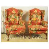 Pair of floral wing back arm chairs; 737-1204 - carved ball in claw feet - 35.5x36x48