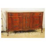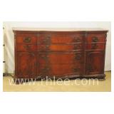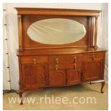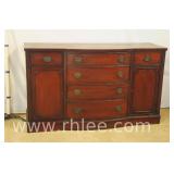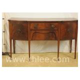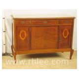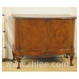 Inlaid burl walnut bow front Queen Anne style server; 55-2740 - 2 doors with fitted interior - (finish as-is) - 46x23x36