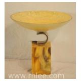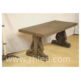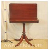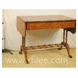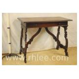 Single drawer writing table with trestle base; 55-2673 - finished on all sides - (finish as-is; crack in side pedestal) - 38x20x30.5
