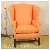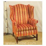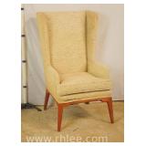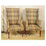 Pair of narrow wing back arm chairs with tapered legs; 737-1210 - (fabric as-is) - 26x29x43