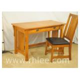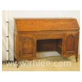 Oak slant front desk with raised panel doors and sides; 55-2609 - worm hole wood - (finish as-is) - 54x18x38.5