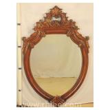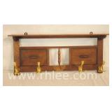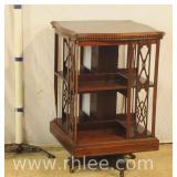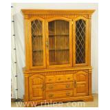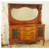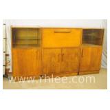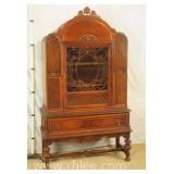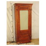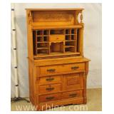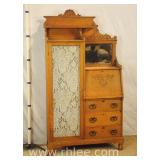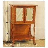 Oak side-by-side bookcase/desk with beveled mirror; 55-2731 - (no glass in door; missing part of front foot, etc.) - 38.5x14x72.5