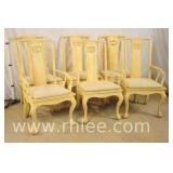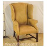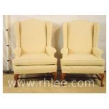 Pair of white upholstered Queen Anne style wing back arm chairs; 737-1208 - (some dirty spots on fabric) - 32x33x43.5
