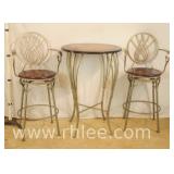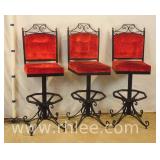 Set of 3 iron swivel seat bar chairs with red upholstery; 55-2716 - 17.5x19x47.5