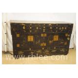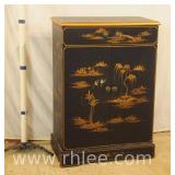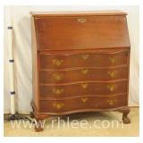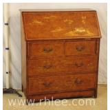 Oriental decorated slant front desk; 55-2592 - (small scuffs in finish; 1 drawer is stuck) - 36x17.5x43