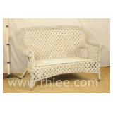 Group of 6 small white wicker pieces; 812-122 - basket, mirror, tray, shelf, etc.