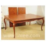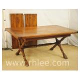Small oak draw leaf dining table; 55-2600 - (finish as-is; part of stretcher is broken) - 30x46x30; 11" leaves