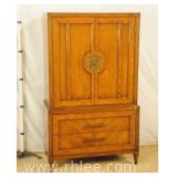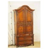 Ethan Allen French style 2 door armoire with fitted interior; 662-958 - raised panel doors and sides - (vertical dividers have been remove on top; hole in back for TV cord) - 47x20.5x72