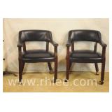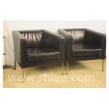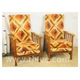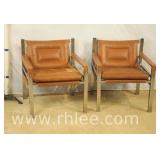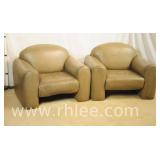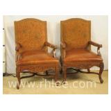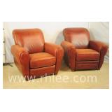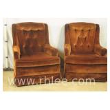 Pair of brown upholstered arm chairs with tufted backs; 737-1211 - 30x32x39