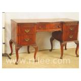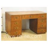 Burl walnut mid-century kneehole desk; 55-2709 - (finish as-is; 1 base is separated from top) - 51x23.5x29.5