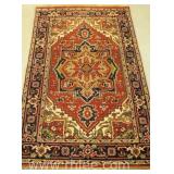 Hand knotted rug; 55-2629 - (worn fringe; stains) - 5.2x8.3