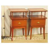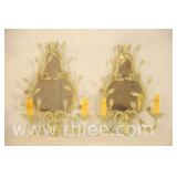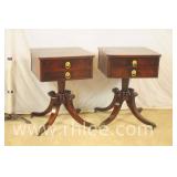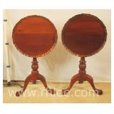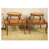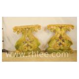 Pair of oval shell top side tables with ornate pedestal bases; 55-2728 - 28x21x22
