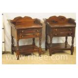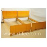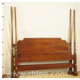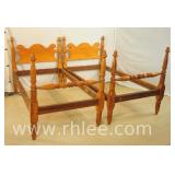 Pair of early 4 poster rope beds; 737-1198 - turned posts and legs - (finish as-is; no bolts for rails) - 40.5x79x44; 36.5x71.5 (not standard twin size)