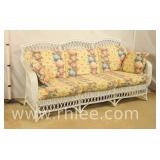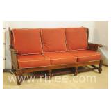 Pine wing back sofa with stretcher base; 55-2710 - (finish as-is) - 73.5x32.5x35.5