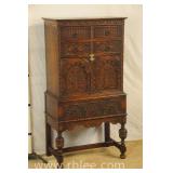 Carved French style 2 door armoire with interior drawers; 55-2737 - raised panel doors and sides - 47x22x82