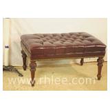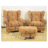 Pair of Wesley Hall upholstered arm chairs with ottoman; 737-1216 - turned legs - 36x37x34 chair; 30x24x16.5 ottoman