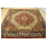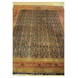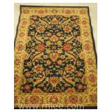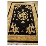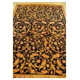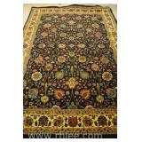 Machine made rug with black field; 189-477 - (loose dirt; stain on border) - 7.10x11.0