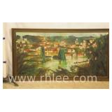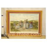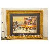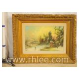 Early print in ornate carved gold frame; 787-118 - castle scene - (chips in frame) - 38x30