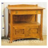 Thomasville pine flip top server with raised panel doors; 737-1189 - (repair to veneer on top) - 38x19x34.5