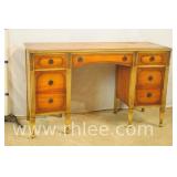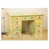 Floral fabric covered kneehole desk; 55-2741 - (fabric as-is; missing 1 pull) - 48.5x24.5x29.5