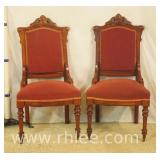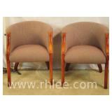 Pair of upholstered curved back chairs; 737-1183 - (stain on side) - 25x24.5x30