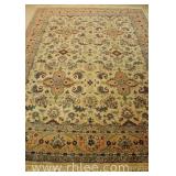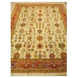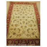 Hand knotted rug with cream color field; 55-2726 - (stains; worn fringe) - 7.9x9.11