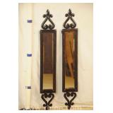 Pair of narrow metal framed beveled mirrors; 737-1188 - distressed finish - 6.5x39