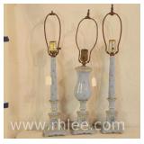 Set of 3 small blue lamps; 737-1200 - (middle lamp is loose and has a small chip) - 4x4x24