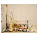 Group of 8 miscellaneous lamps; 55-381,906,1123,1243,1244 - brass floor lamp, white hanging light, etc