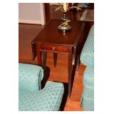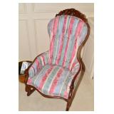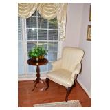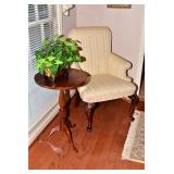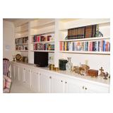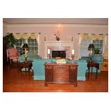 Sitting Room/Study: Sofa, Round Mahogany Side Table, Drop Leaf Side Table, White Pine Coffee Table, Antique Victorian Rocking Chair, Upholstered Wing Back Chair, Brass Lamps, Faux Plant, Arm Chair, Books, Smalls, Accessories, Art, Flat Screen TV, and More.