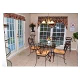 Patio: Iron Patio Table and Chairs, Birdbath, and More.