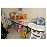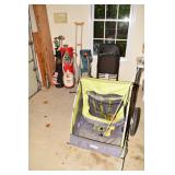 Garage: Pet Carrier, Tools, Cleaning Supplies, Lightbulbs, Sprayers, High Chair, Pink Big Wheel, Trimmer, Gas Can, Port-a-Potty, Instep Bike Trailer, Folding Chair, Women’s Golf Clubs, Golf Bag, and More.