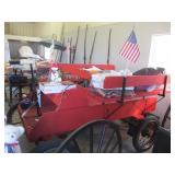 Directions Approx. 1 mile North of Seymour on Hwy 55 Horse drawn Sleigh w/Poles, Horse Drawn Buggy with Poles, and Horse Drawn Tour Wagon: Antiques & Household:, 2-Beautiful Dining Room Table and Chairs, Sets, Oak Armour, Oak Pedestal Plant Stands, flatware, Bake ware, cookware, Wicker Set-2 chairs, Love seat-end table, Bull Horns, Fenton ware, Air Mattresses, Compact Cases, Jewelry, Accordion, Old windows, Wagon Wheels, Oil Lamps, Coke Items, Signs, Stoneware, Totes, Sled, Fishing Poles w/reels, fishing tackle, Coke Ice Cooler, Grill, Anderson Casement Crank Out Window, Stained Lead Glass, Drill Press, Pipe Clamps, Scroll Saw, wrenches, screwdrivers, tools, and More. New Hand Crafted Items:, Bird Houses-Painted in many designs, some are Harley themed, and some are packer themed, some have License Plate Roofs, all are very unique, Christmas Decor, wood Snowmen, X-mas trees, Easter decor, Hand Painted and crafted Gourds, Pumpkins and much More