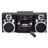 RCA 400-Watt 5-CD Bluetooth Sound System RCA sound system with built-in Bluetooth receiver lets you wirelessly play audio from your Bluetooth-enabled devices 400 watts total power Programmable 5-disc carousel CD player with repeat and random playback Supports CD, CD-R/RW and MP3 CD playback Amplifer has Bass Boost and preset EQ FM tuner with 20 station presets 2 detachable speakers NEW! In factory box. Retail:$169.99. |