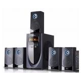 beFree Sound 125-Watt 5.1 Channel Surround Sound Bluetooth Speaker System - Set of 5 5.1 channel subwoofer surround sound Bluetooth speaker system 125 watts peak power 4" subwoofer driver 9" subwoofer 4" horn tweeter 2" woofer Bluetooth, USB, and SD connector Approx. 15-1/4"W x 26-1/2"D x 13-1/4"H NEW! In retail box. Retail:$149.99. |