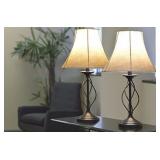 McLeland Design 2-Pc. Birdcage Table Lamp Set Includes 2 matching table lamps Metal with antique bronze-colored finish 13"-diameter softback fabric shade 22"H NEW! In factory box. Retail:$79.99. |