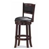 August 29" Bar Stool Padded seat and back for extreme comfort High-density foam padding with vinyl covers Solid hardwood frame with cappuccino finish Seat swivels 360 degrees Added comfort through a ringed footrest Additional stability using a flared-leg design NEW! In factory box. Retail:$134.99. |