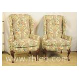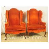 Pair of Temple Queen Anne style wing back arm chairs; 737-1231 - shell carved knees - 31x33x43