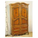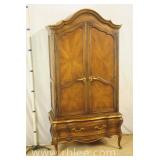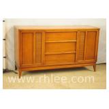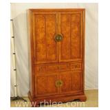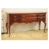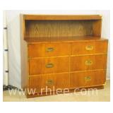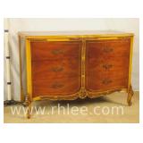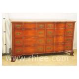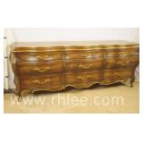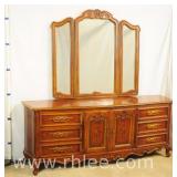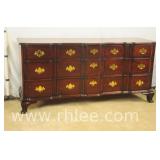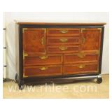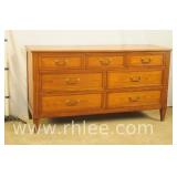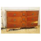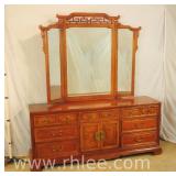 Broyhill Oriental style dresser with brass hardware; 737-1251 - banded top - 2 doors and 7 drawers - 56x19x41.5