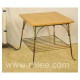 Distressed top 2 tier side table with metal base; 68-597 - 26.5x26.5x23.5