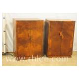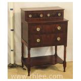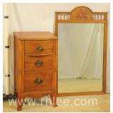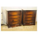 Pair of mahogany serpentine front 4 drawer bachelor's chests; 68-577 - mirror top brushing slides - can be used with or without included marble tops - 26x16x31