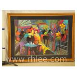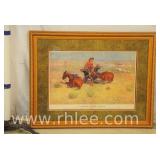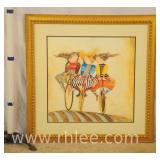 Large framed print with gold frame; 68-618 - 3 girls on bikes "Holiday on Wheels" by G. Rodo Boulanger - 34.5x34.5