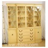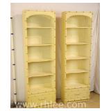 Pair of Thomasville white cane cut open front bookcases; 68-565 - drawer on bottom - adjustable serpentine front shelves - 23x11x76