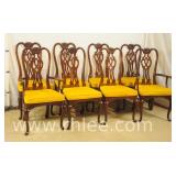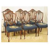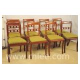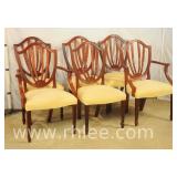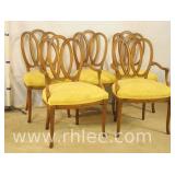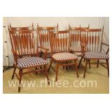 Set of 6 arrow spindle back dining chairs; 737-1240 - 2 arm chairs, 4 side chairs - (seat fabric is faded) - 24.5x21.5x39.5 arm chair; 19.5x20x38 side chair