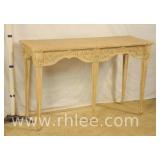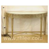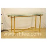 Oval glass top console table with brass base; 293-592 - 54x16x26
