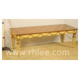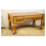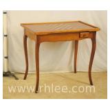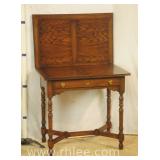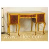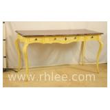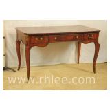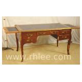 Hekman French style 3 drawer writing desk with cabriole legs; 68-622 - oak herringbone top and yellow base - finished on all sides - 58x27x30
