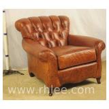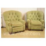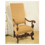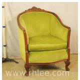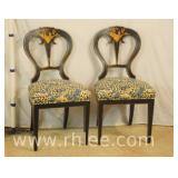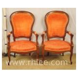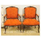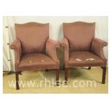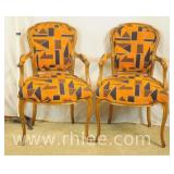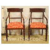 Pair of upholstered arm chairs with mahogany frames; 74-3320 - (fabric as-is) - 33x30x38.5