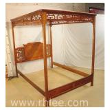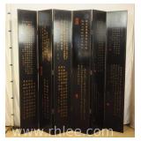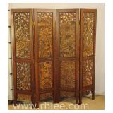 Carved Oriental style 4 panel room divider; 68-629 - double sided - double hinged - folds in either direction - 69x71.5
