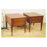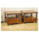 Pair of Henredon single drawer 2 tier end tables; 737-1241 - banded tops - 27x27x21
